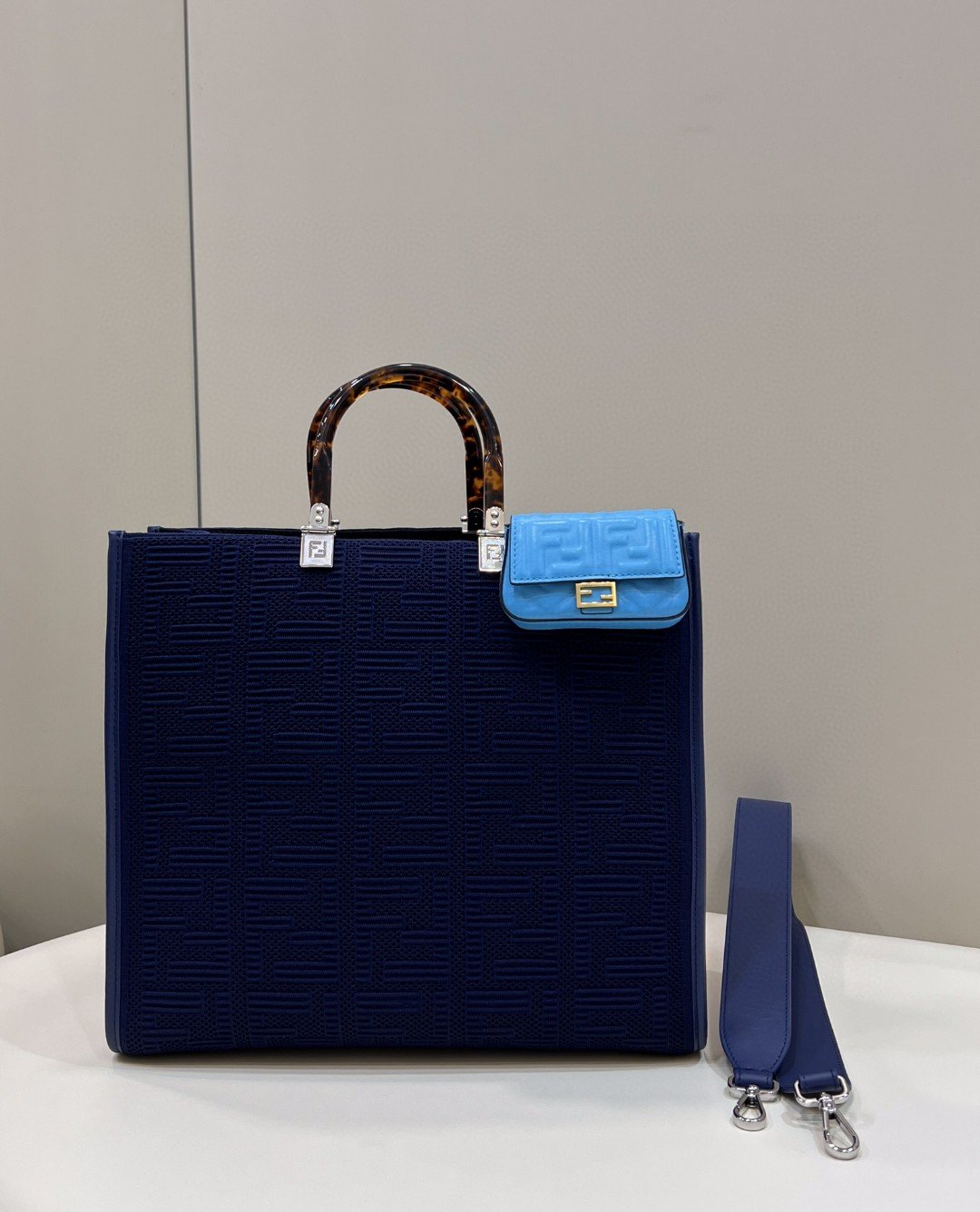FND Sunshine Medium Navy Blue FF fabric shopper Bag For Woman 31cm/12in