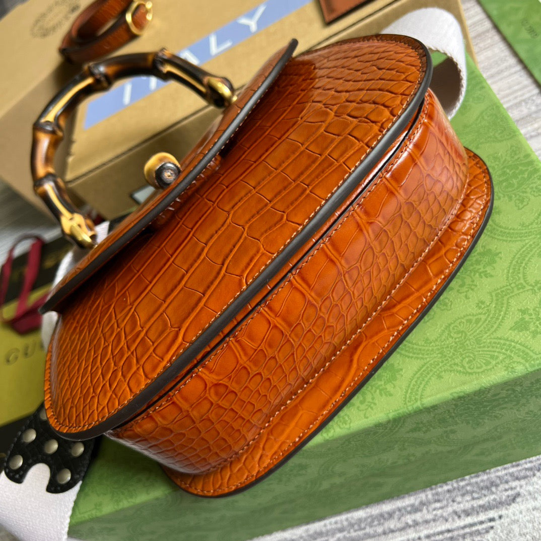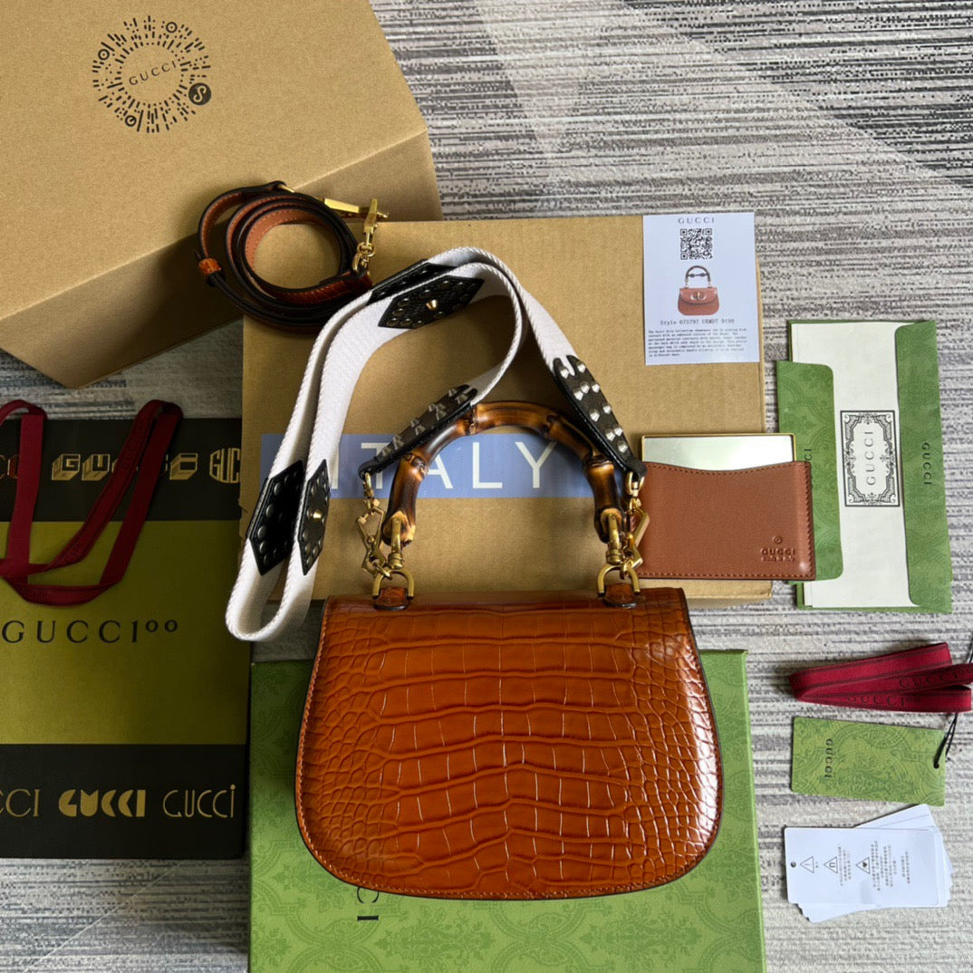 GG Bamboo 1947 Crocodile Top Handle Bag Red For Women, Women’s Bags 10.2in/26cm GG