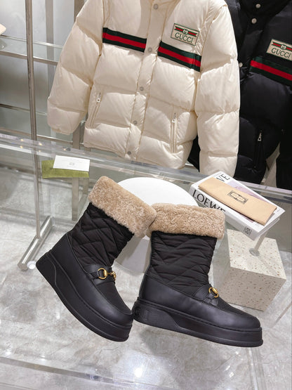 GG HORSEBIT CHEVRON QUILTED BOOTS BLACK