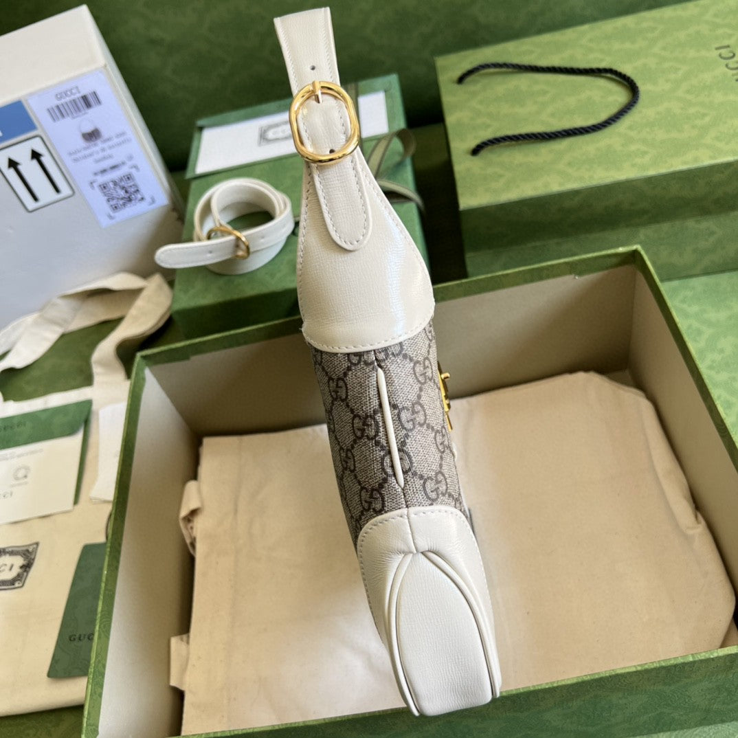 GG Jackie 1961 Small Shoulder Bag Beige And Ebony GG Supreme Canvas For Women 11in/28cm 636706 HUHHG 9794