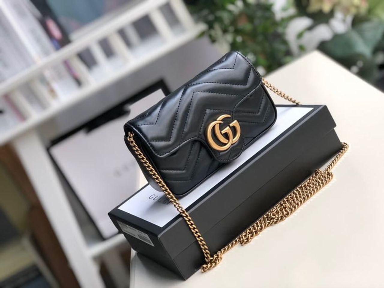 gg Marmont Matelassé Super Mini Bag Dusty Black Chevron For Women 6.2in/16.5cm 476433 DTDCT 1000