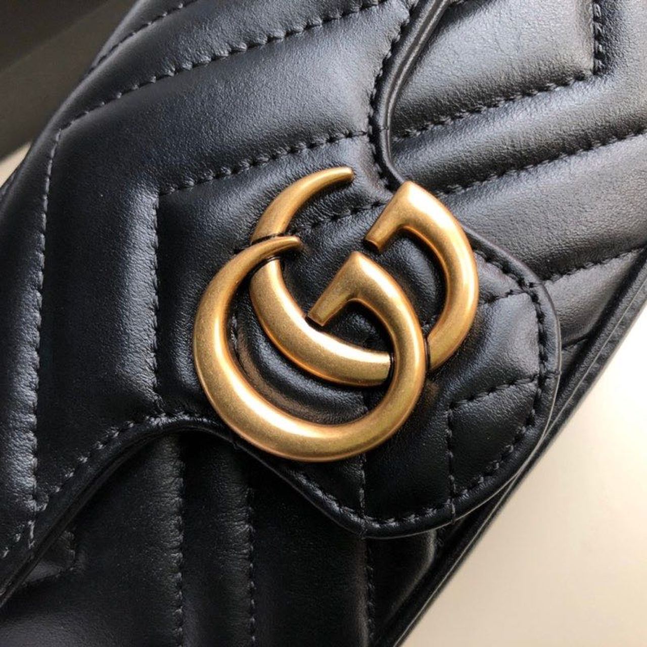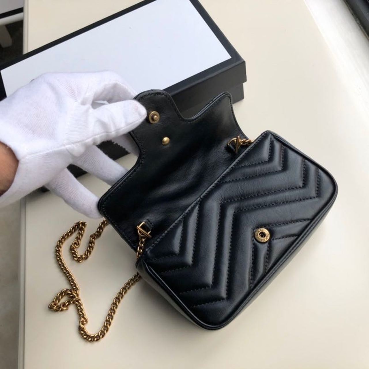 GG Marmont Matelassé Super Mini Bag Dusty Black Chevron For Women 6.2in/16.5cm 476433 DTDCT 1000