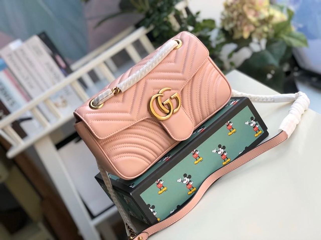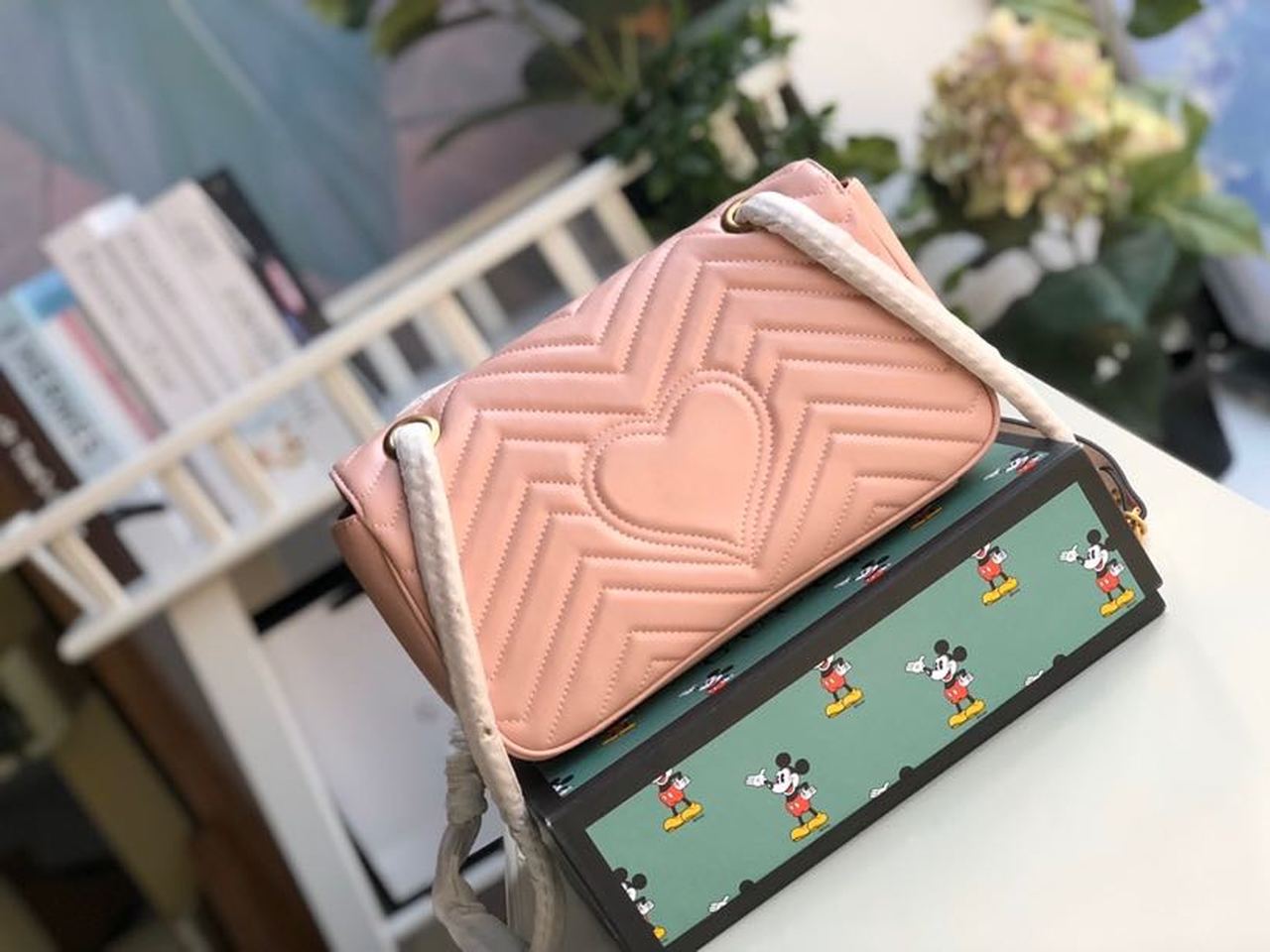 gg Marmont Small Matelassé Shoulder Bag Dusty Pink Matelassé Chevron For Women 10in/26cm gg 443497 DTDIT 5729