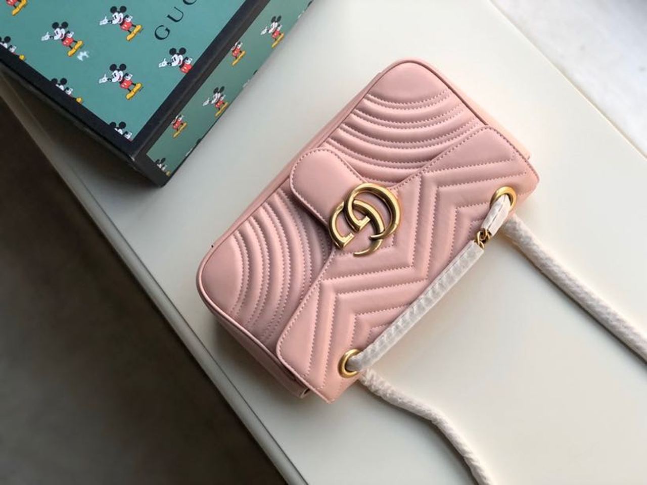 GG Marmont Small Matelassé Shoulder Bag Dusty Pink Matelassé Chevron For Women 10in/26cm GG 443497 DTDIT 5729