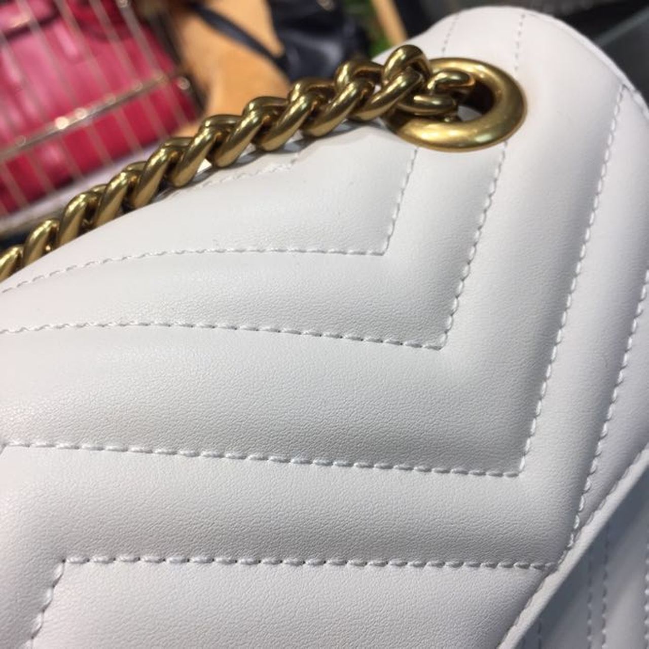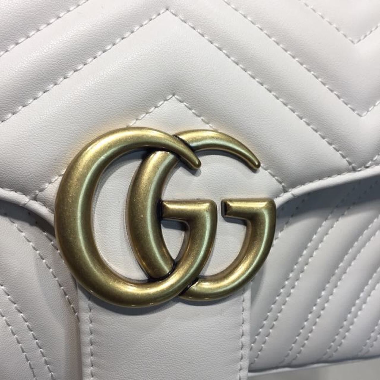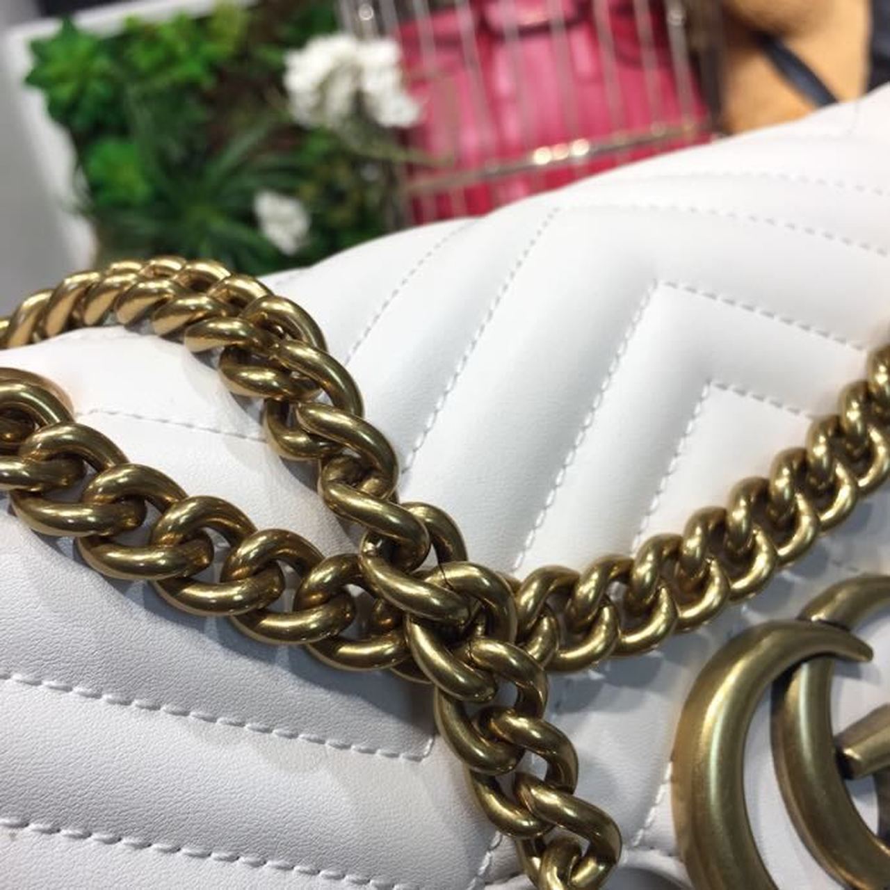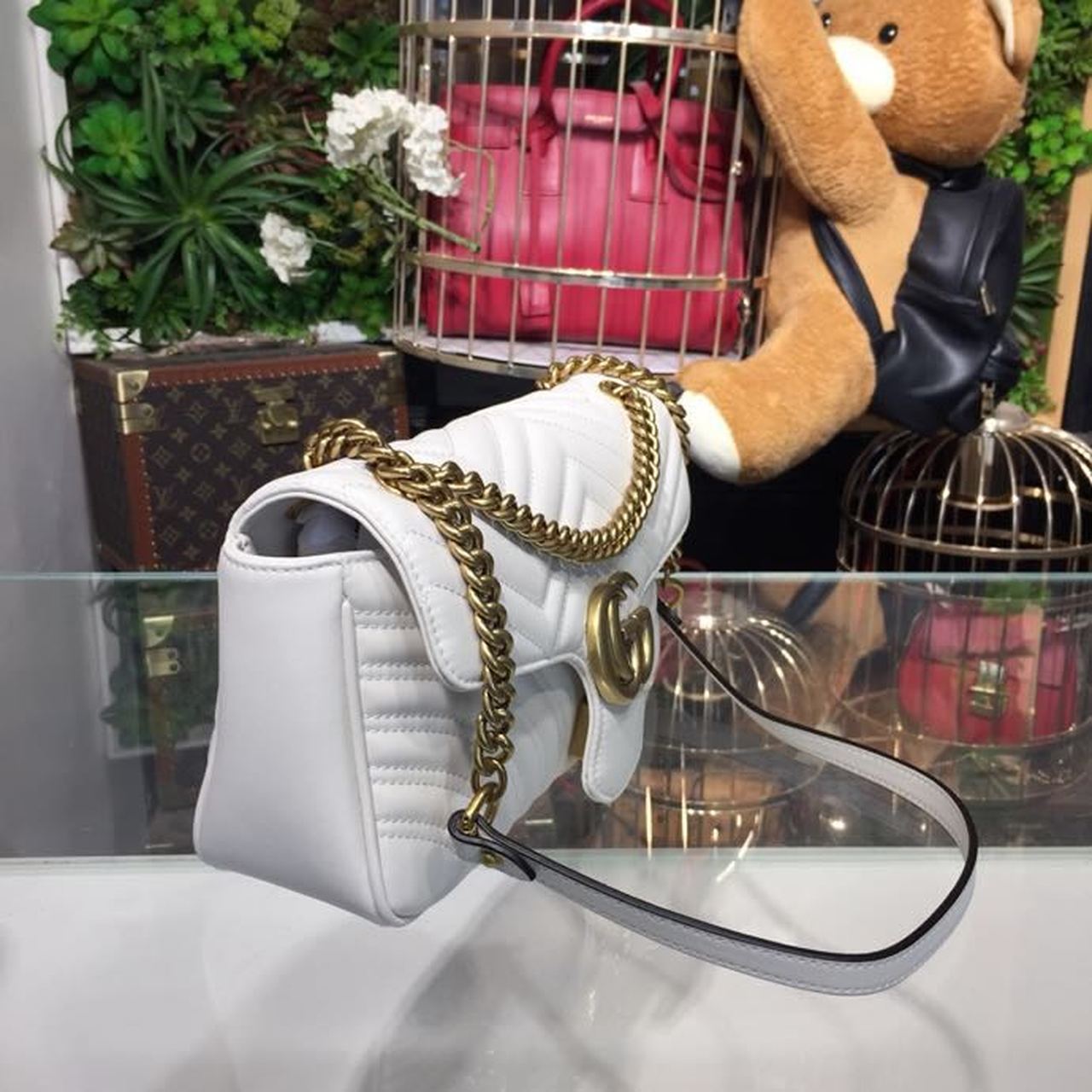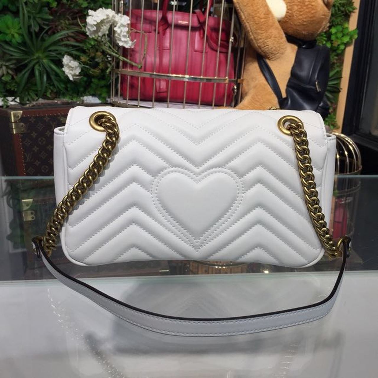 gg Marmont Small Matelassé Shoulder Bag White Chevron For Women 10in/25cm 443497 DTDIT 9022
