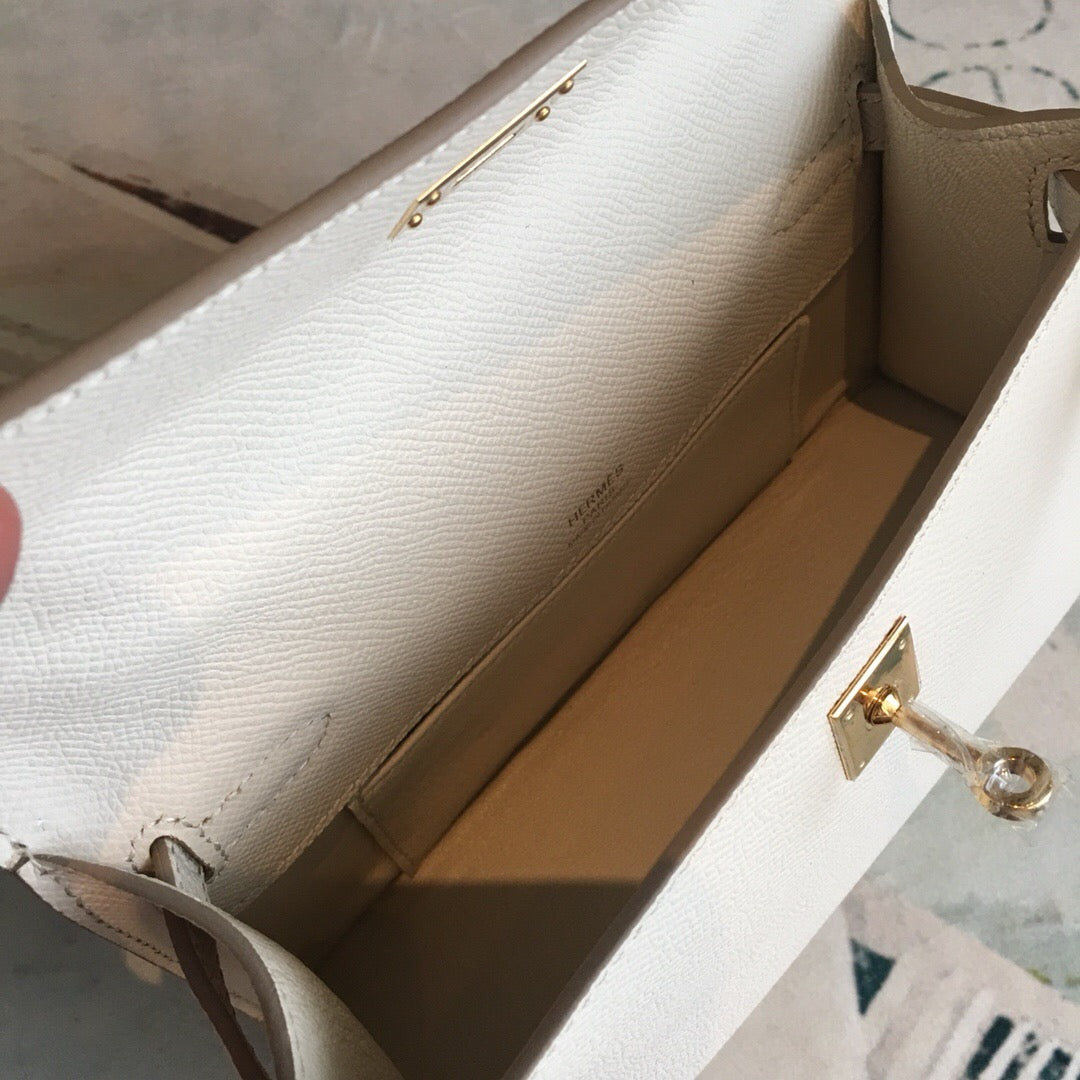 HRMS Kelly Pochettee White For Women Gold Toned Hardware 8.5in/22cm