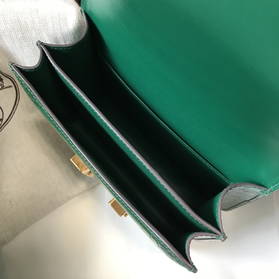 HRMS Mini Constance Bag Green For Women Gold Color Hardware 7.1in/18cm