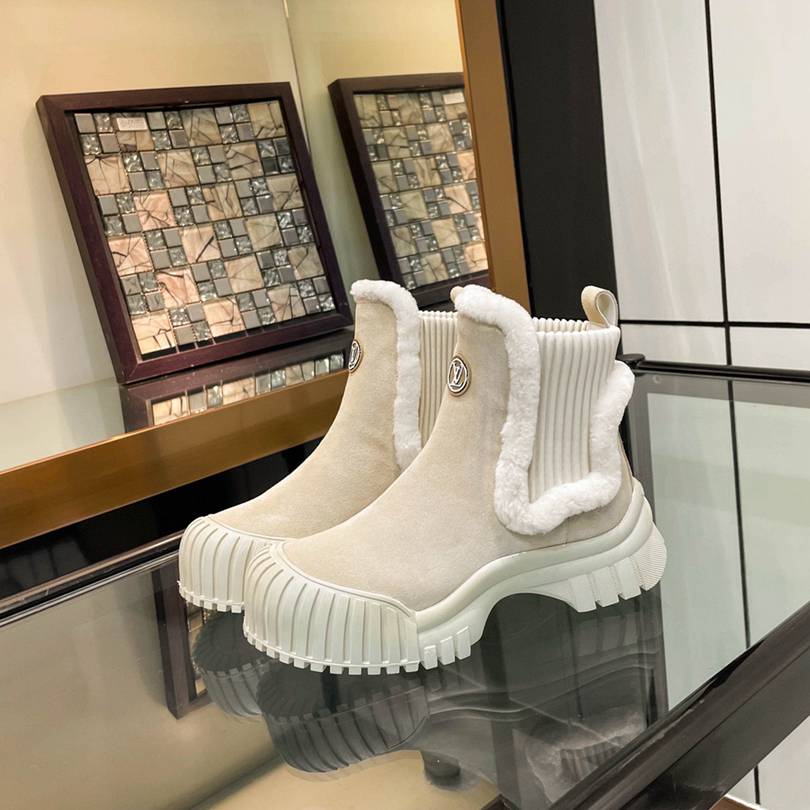LV RUBY FLAT BOOTS SUEDE CALFSKIN AND SHEARLING BEIGE 1AGWGB