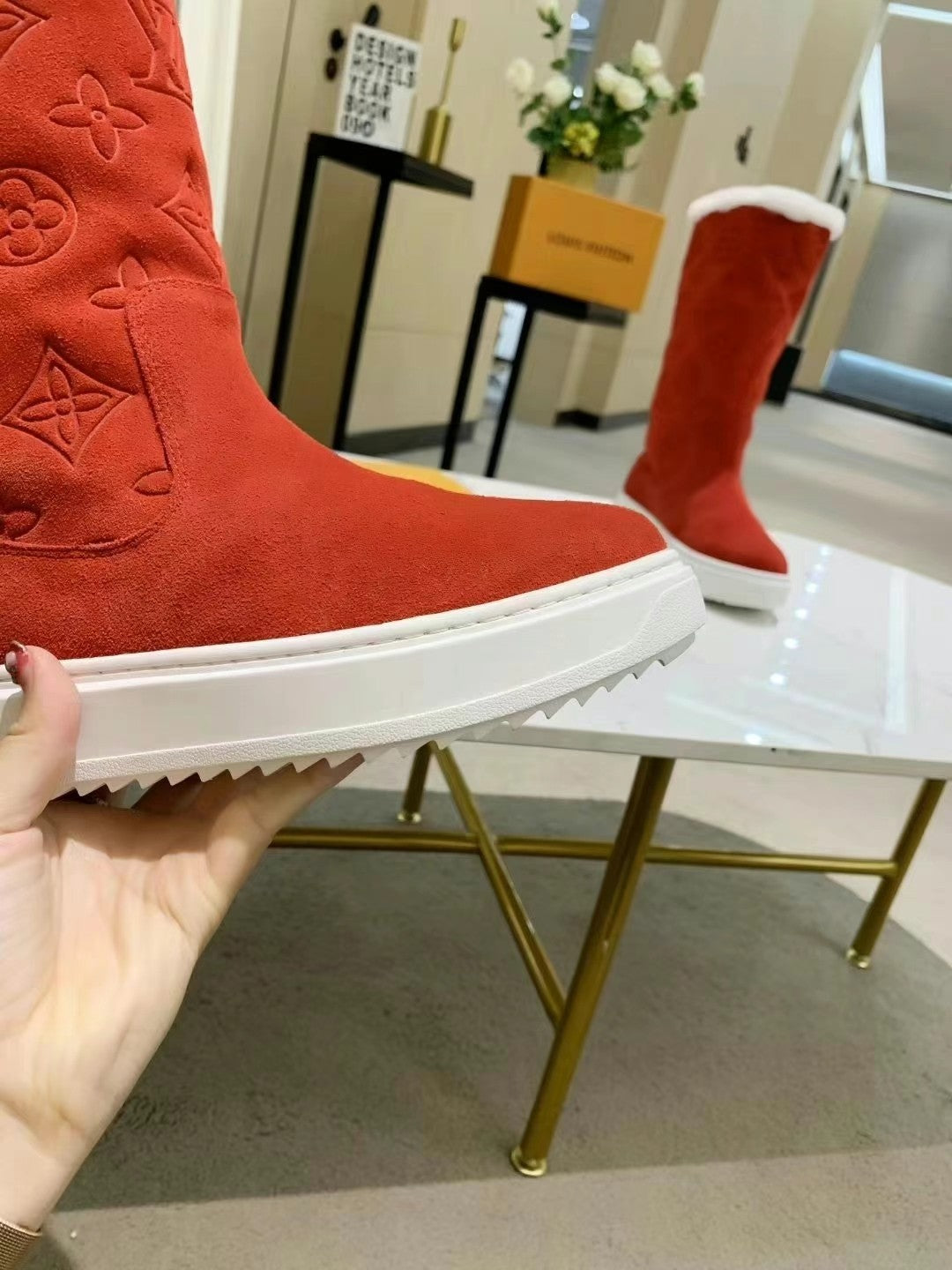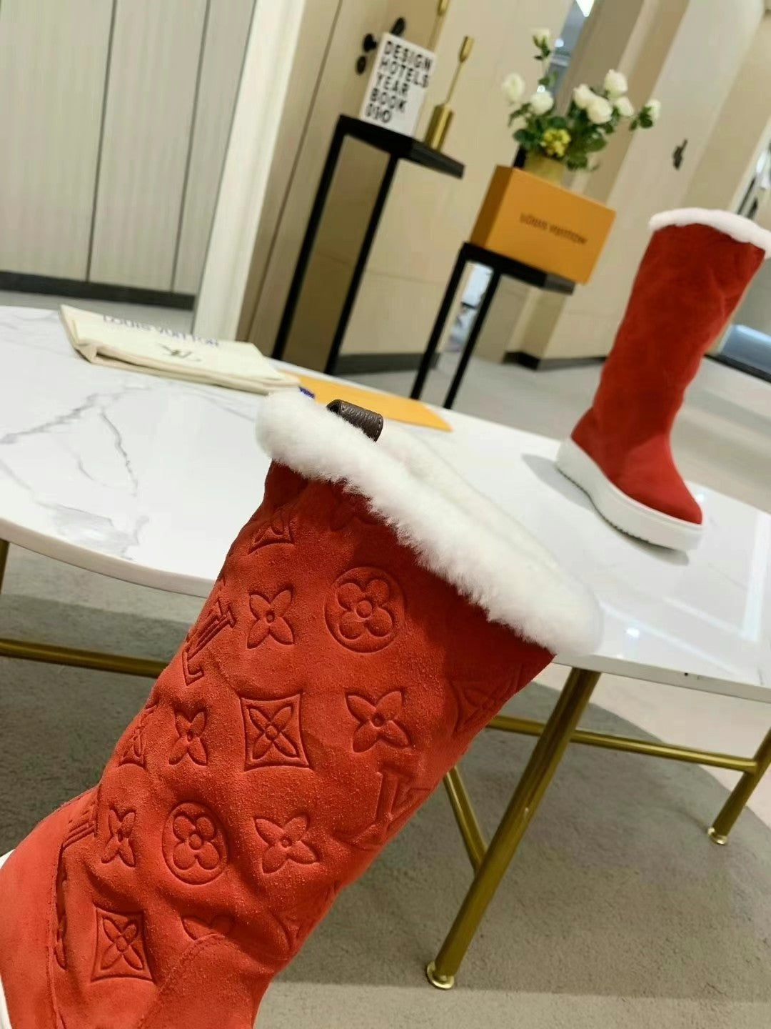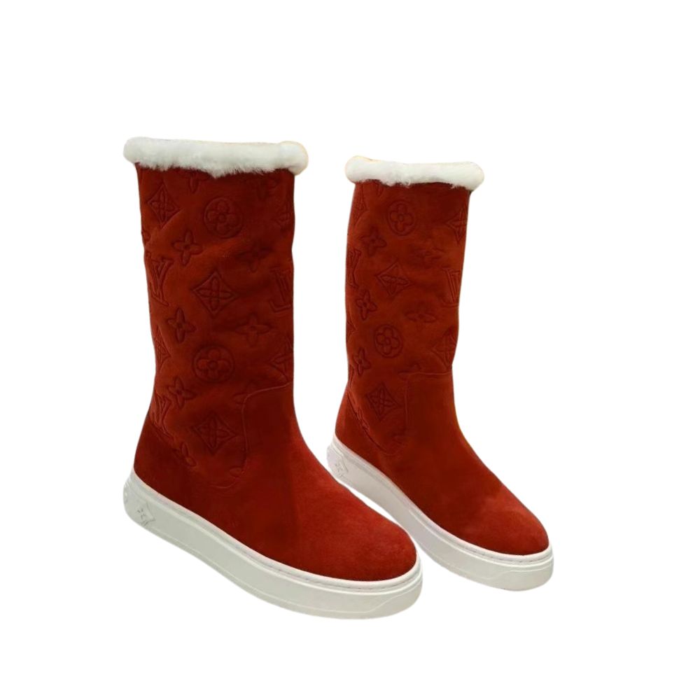 LV SUEDE MONOGRAM BOOTS RED