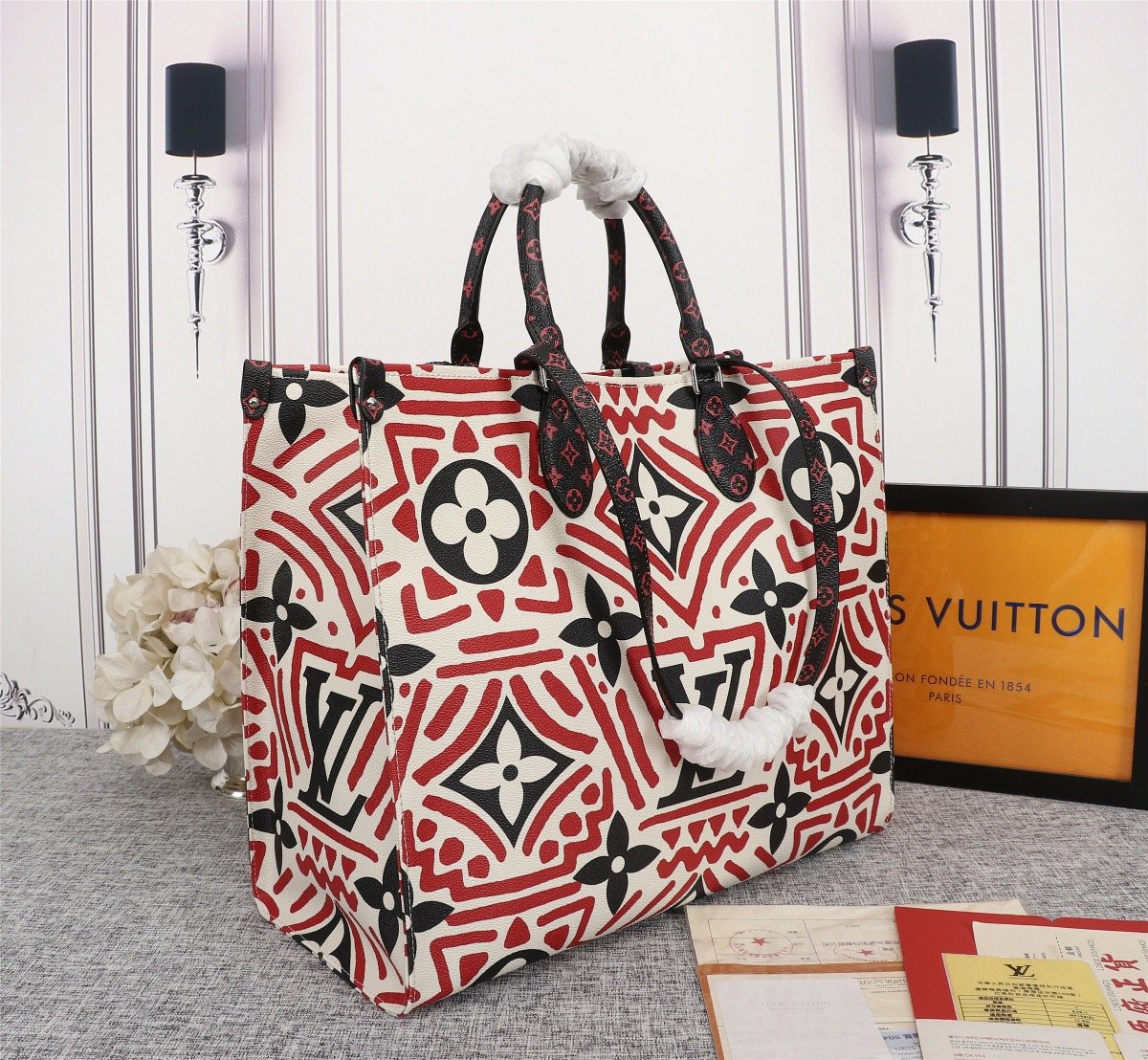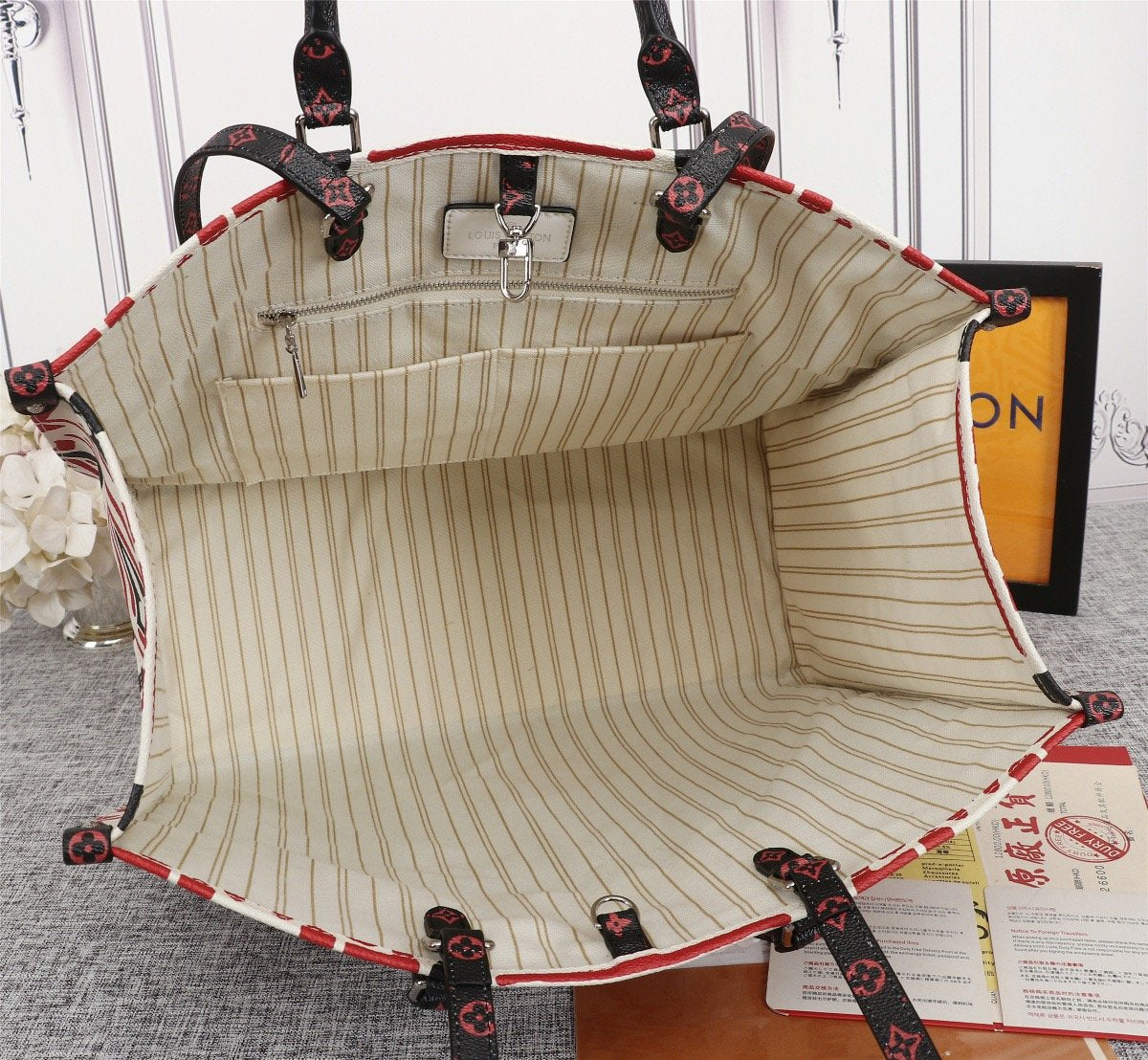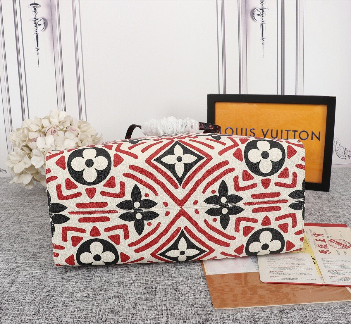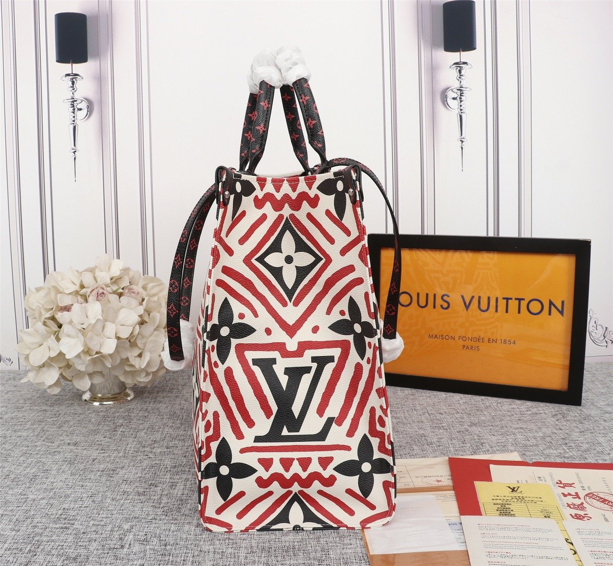 Includes Shipping bags, dustbag sleeper, care manual, booklet, tag.