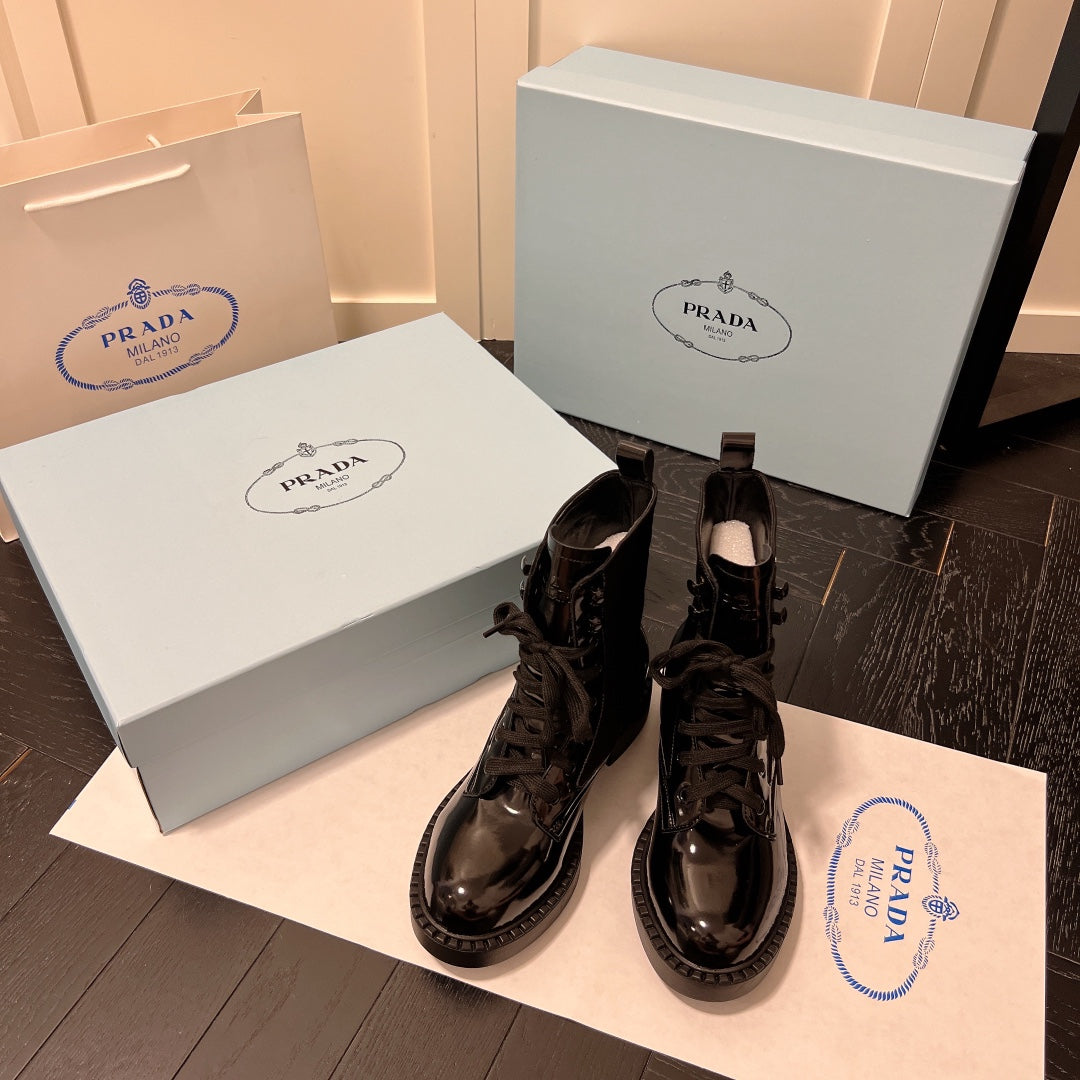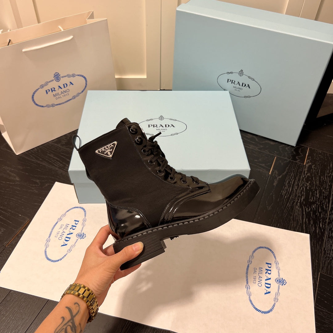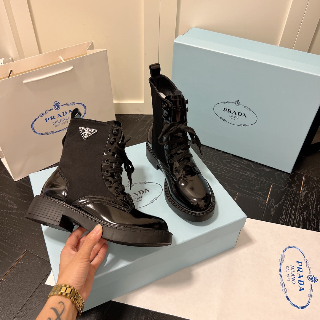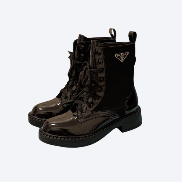 PD BRUSHED-LEATHER AND RE-NYLON BOOTS SHINY BLACK