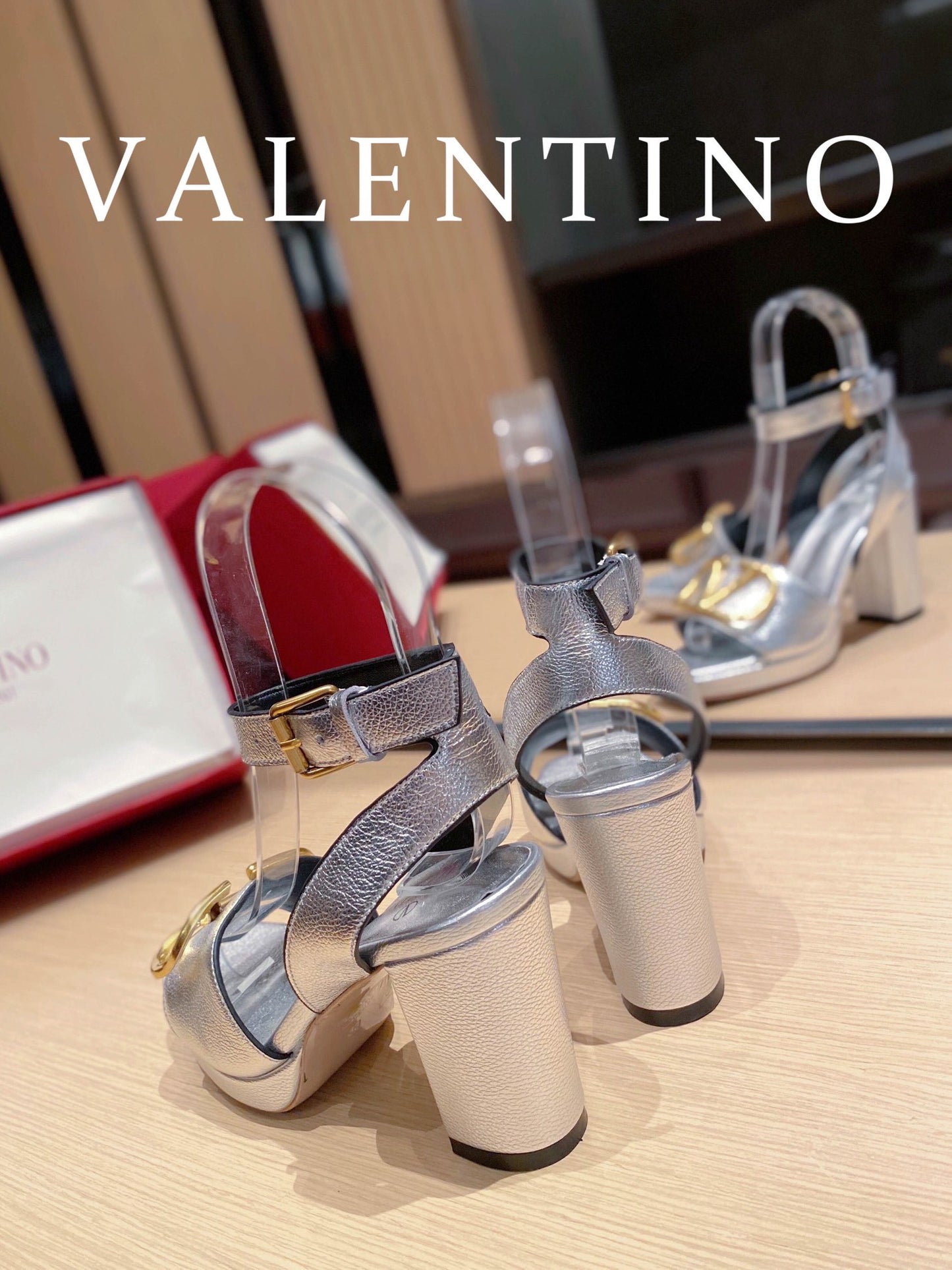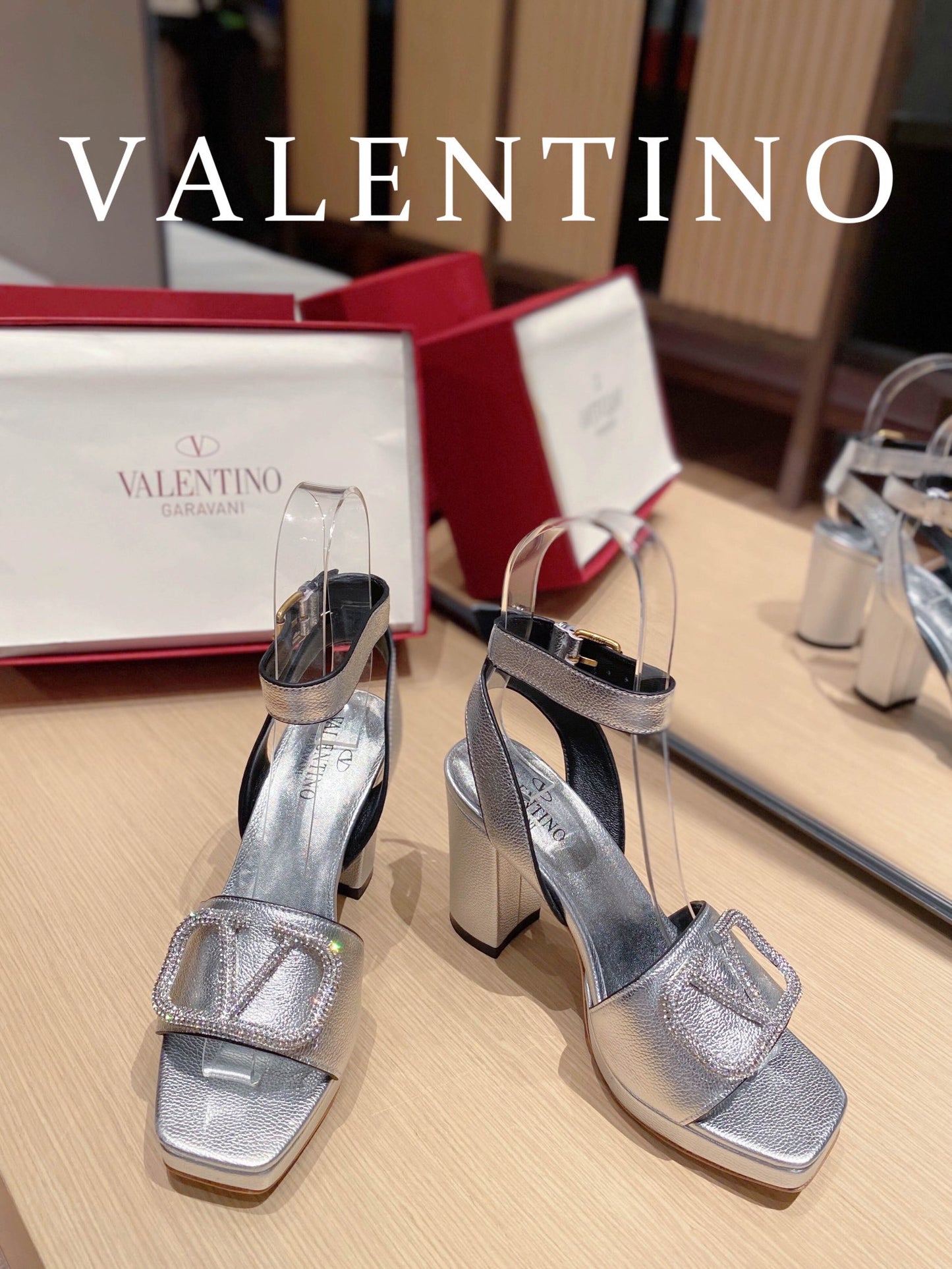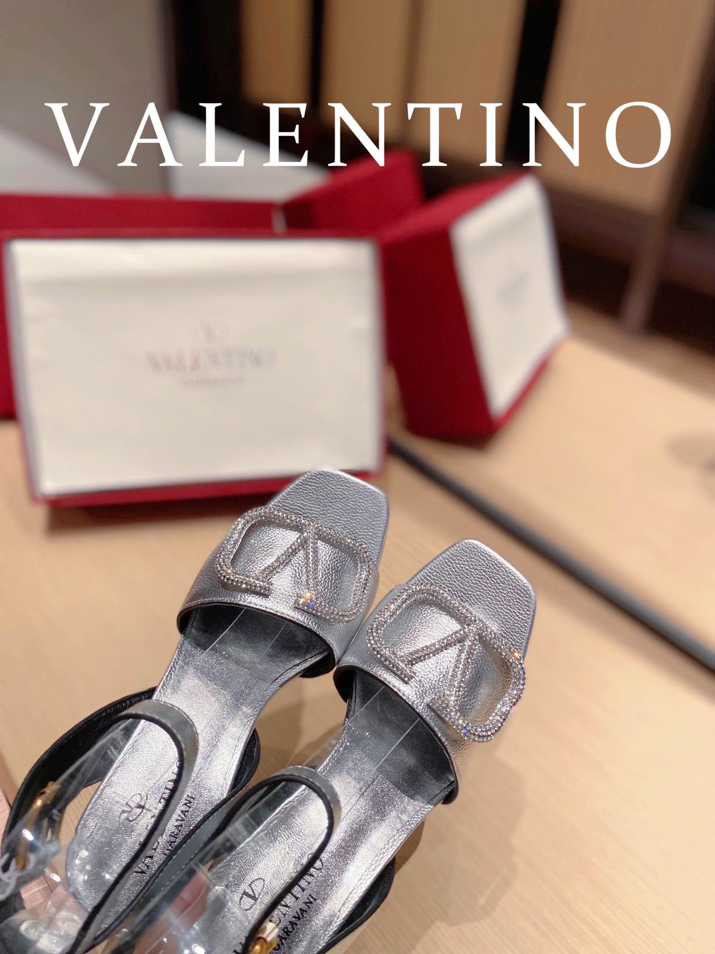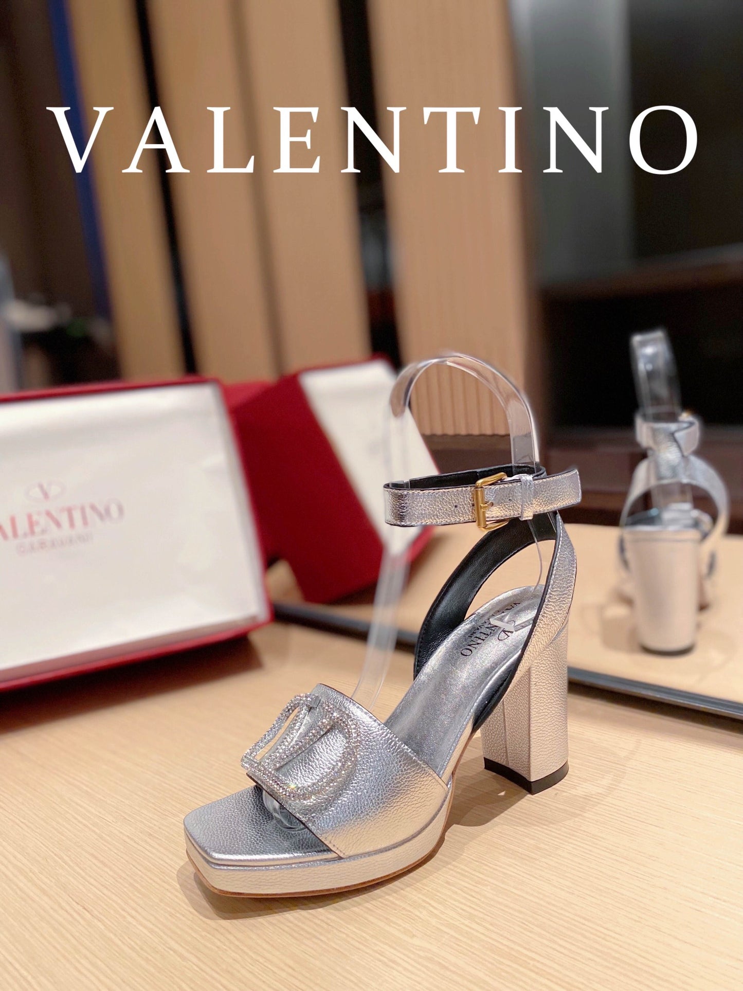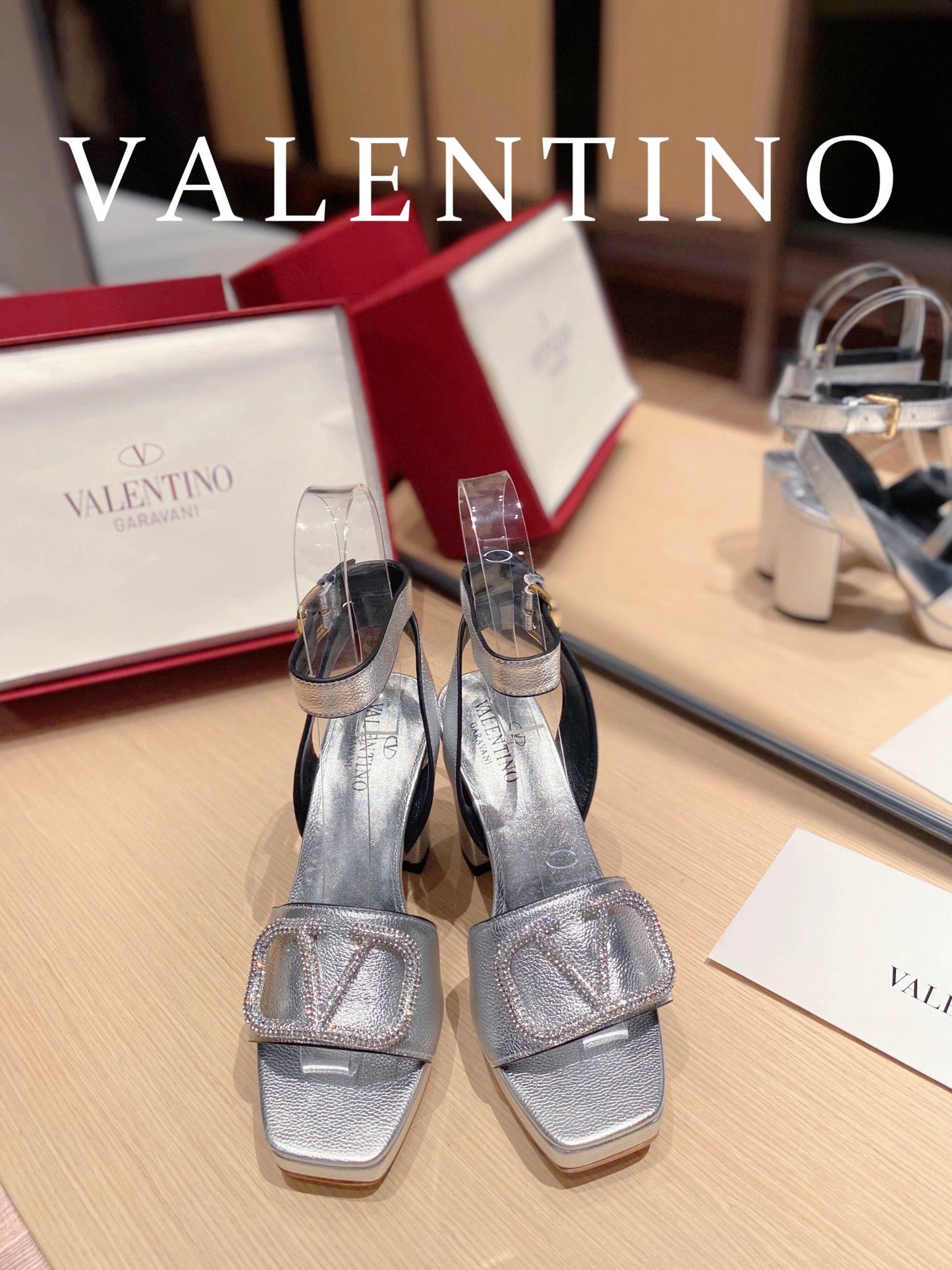 Valentino Garavani Strap Heeled Sandals With V Logo Crystal Embellishment Silver For Women