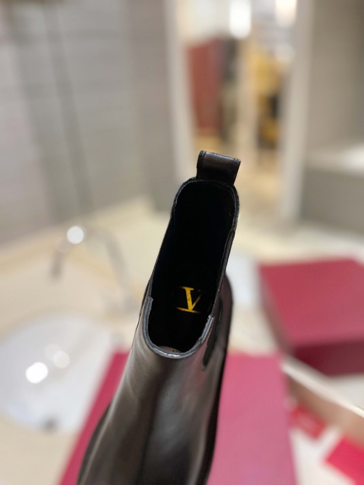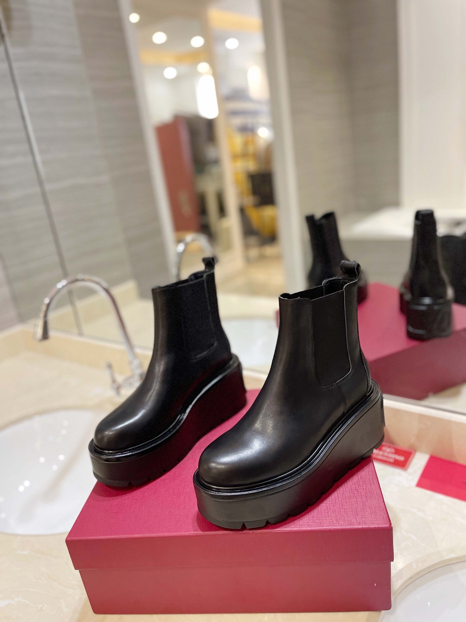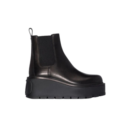 VL GARAVANI UNIQUEFORM V LOGO LEATHER PLATFORM BOOTS BLACK