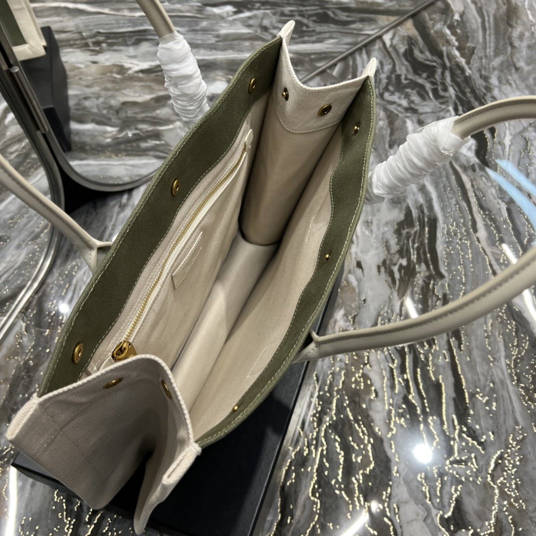 YSSL Rive Gauche Small Tote Bag In Linen Military Green For Women 15.4in/39cm YSL 617481FAADI3281