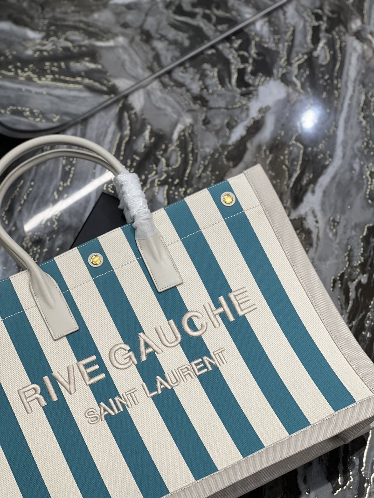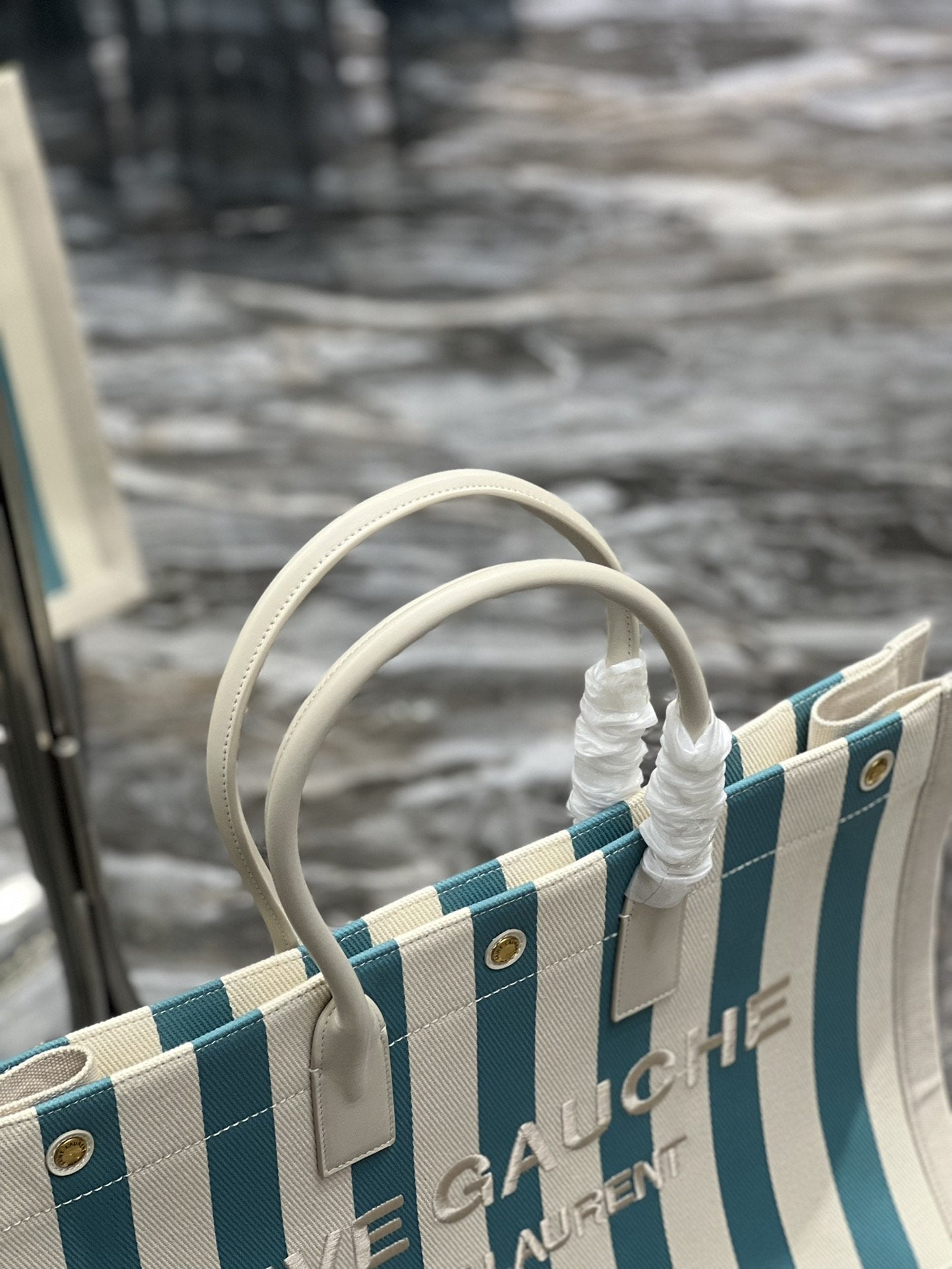 S.L Rive Gauche Tote Bag In Water Green For Women 18.9in/48cm YSL 499290FAAD51680