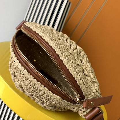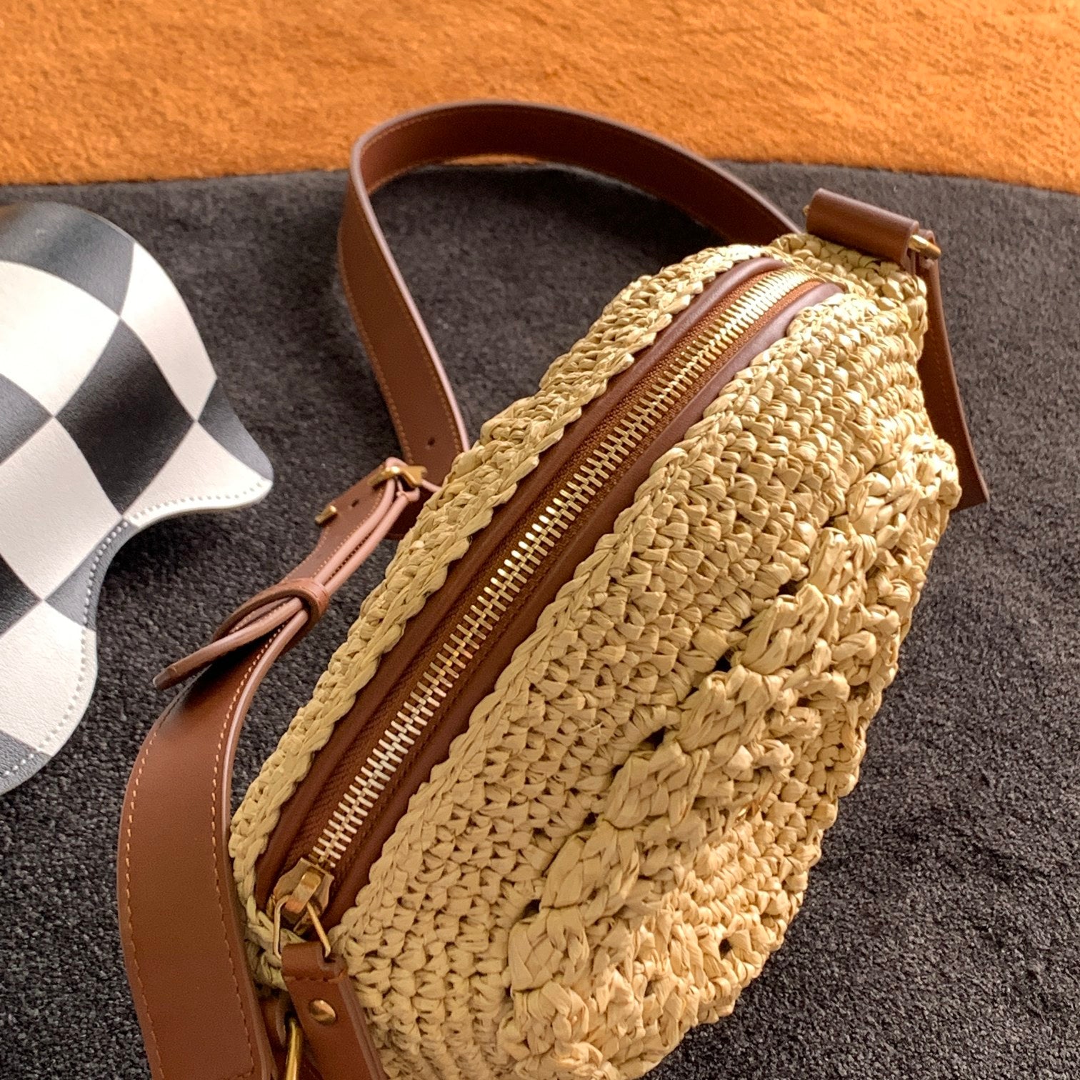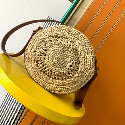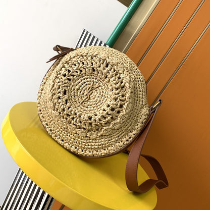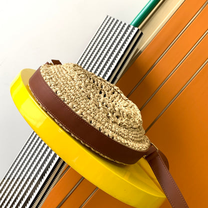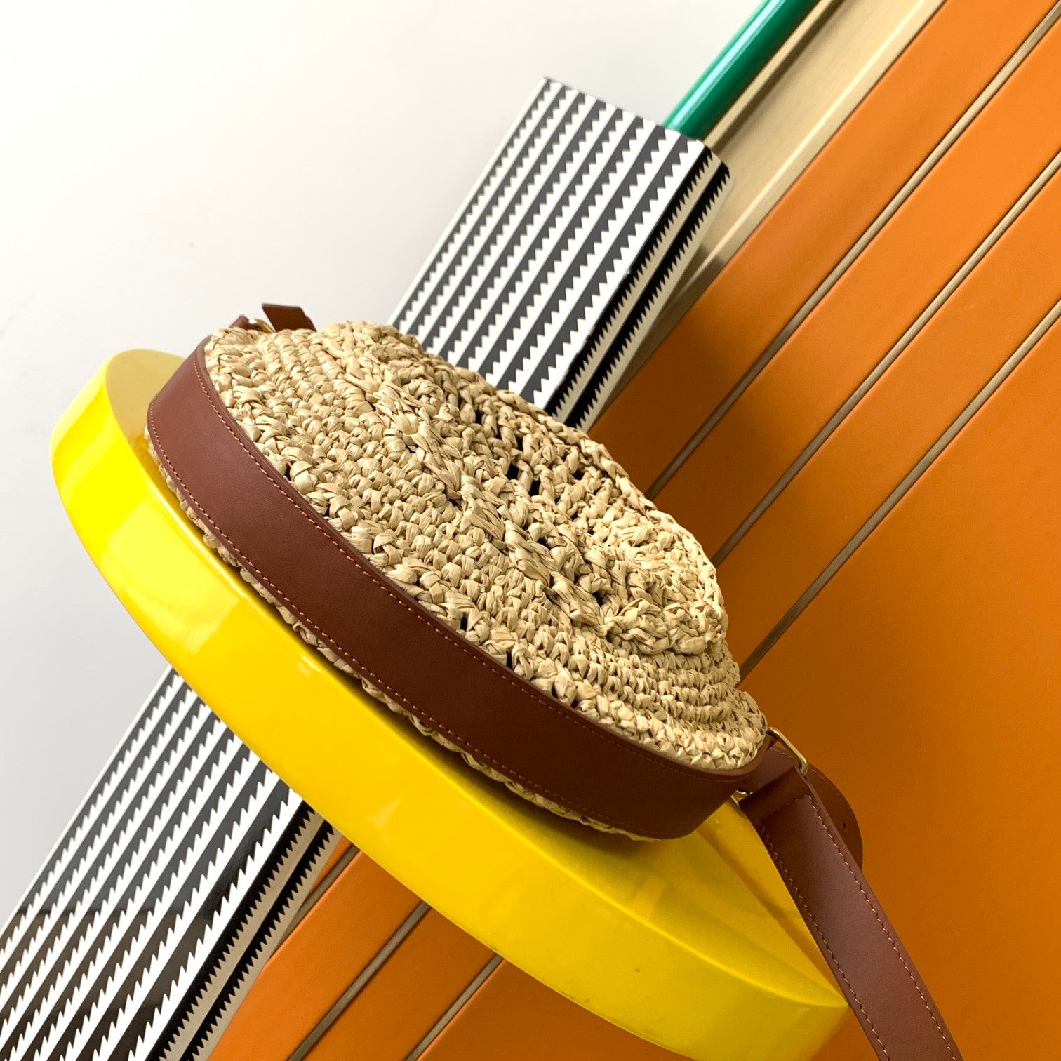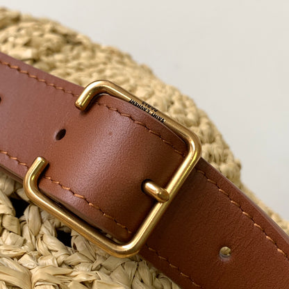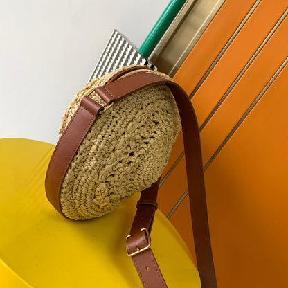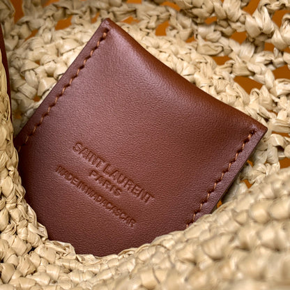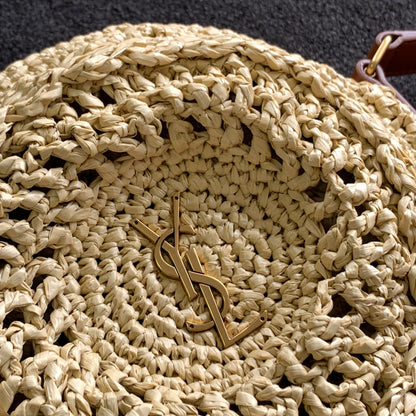 S.L Sac Rond Bag In Raffia For Women 8.3in/21cm YSL Brown 685601GAAAA2080