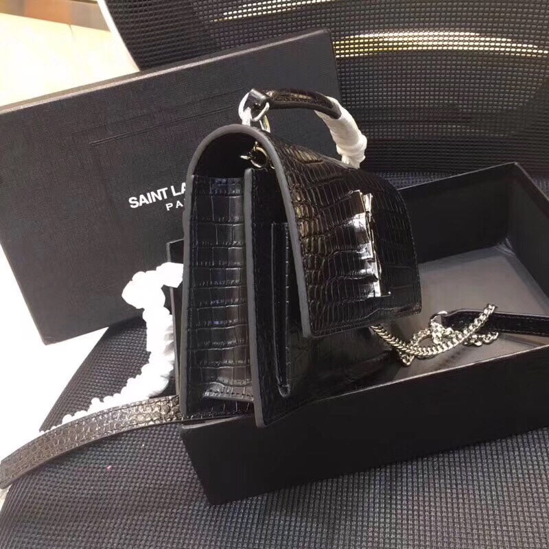 YSSL Sunset Chain Wallet In-Embossed Black For Women 8.2in/21cm YSL