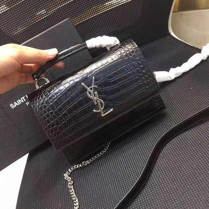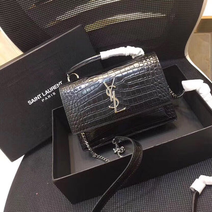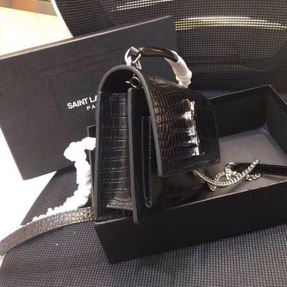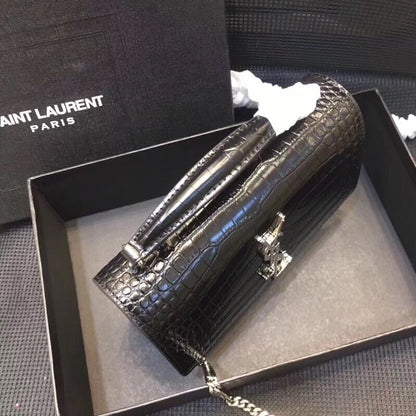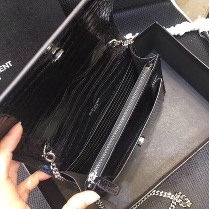 S.L Sunset Chain Wallet In-Embossed Black For Women 8.2in/21cm YSL