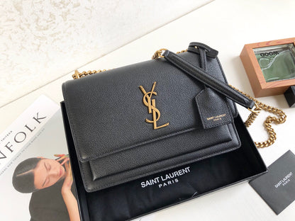 YSSL Sunset Medium Chain Bag Black For Women 8.6in/22cm YSL 442906D420W1000
