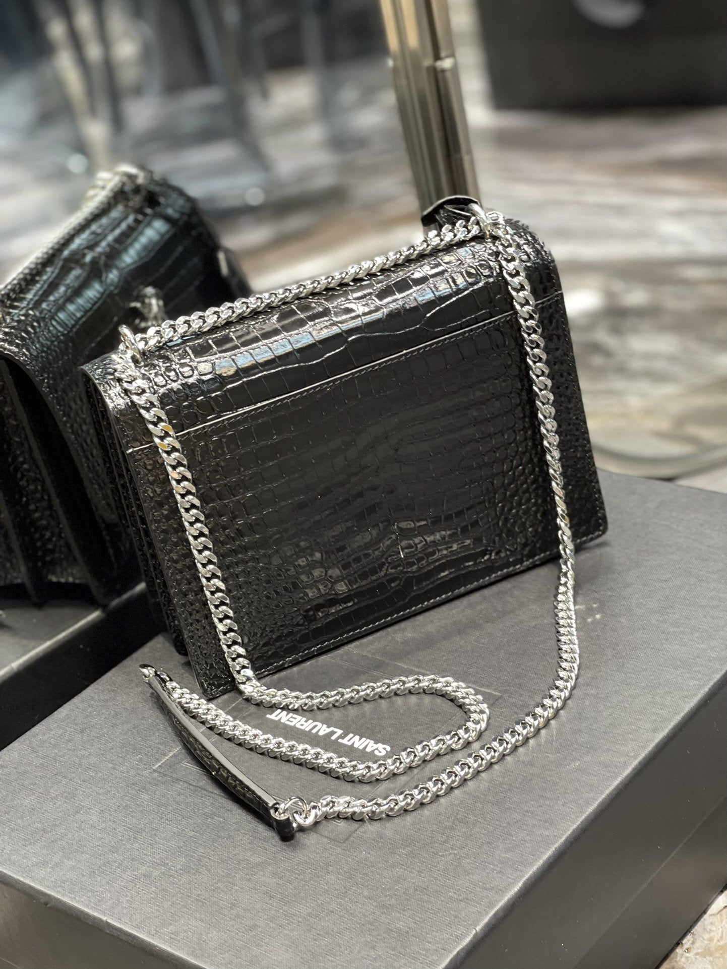 YSSL Sunset Medium Chain Bag Black For Women 8.6in/22cm YSL 442906DND0U1000