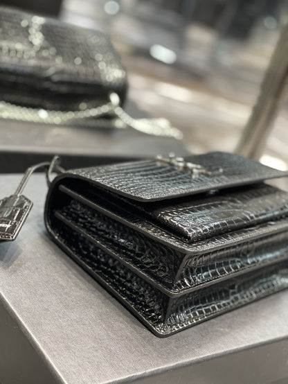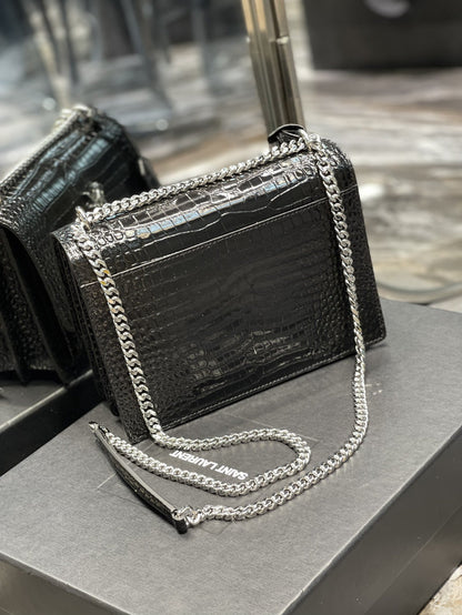 S.L Sunset Medium Chain Bag Black For Women 8.6in/22cm YSL 442906DND0U1000
