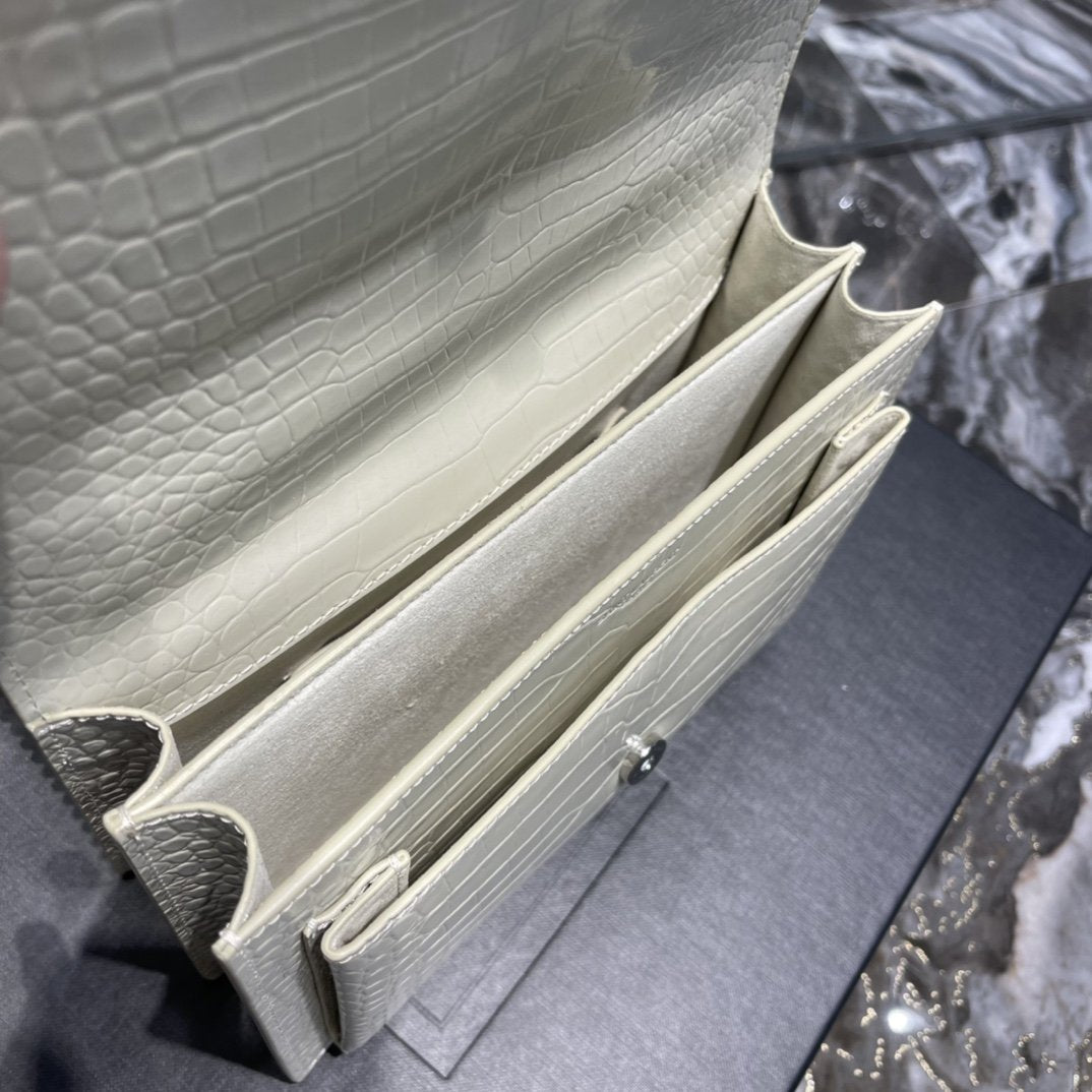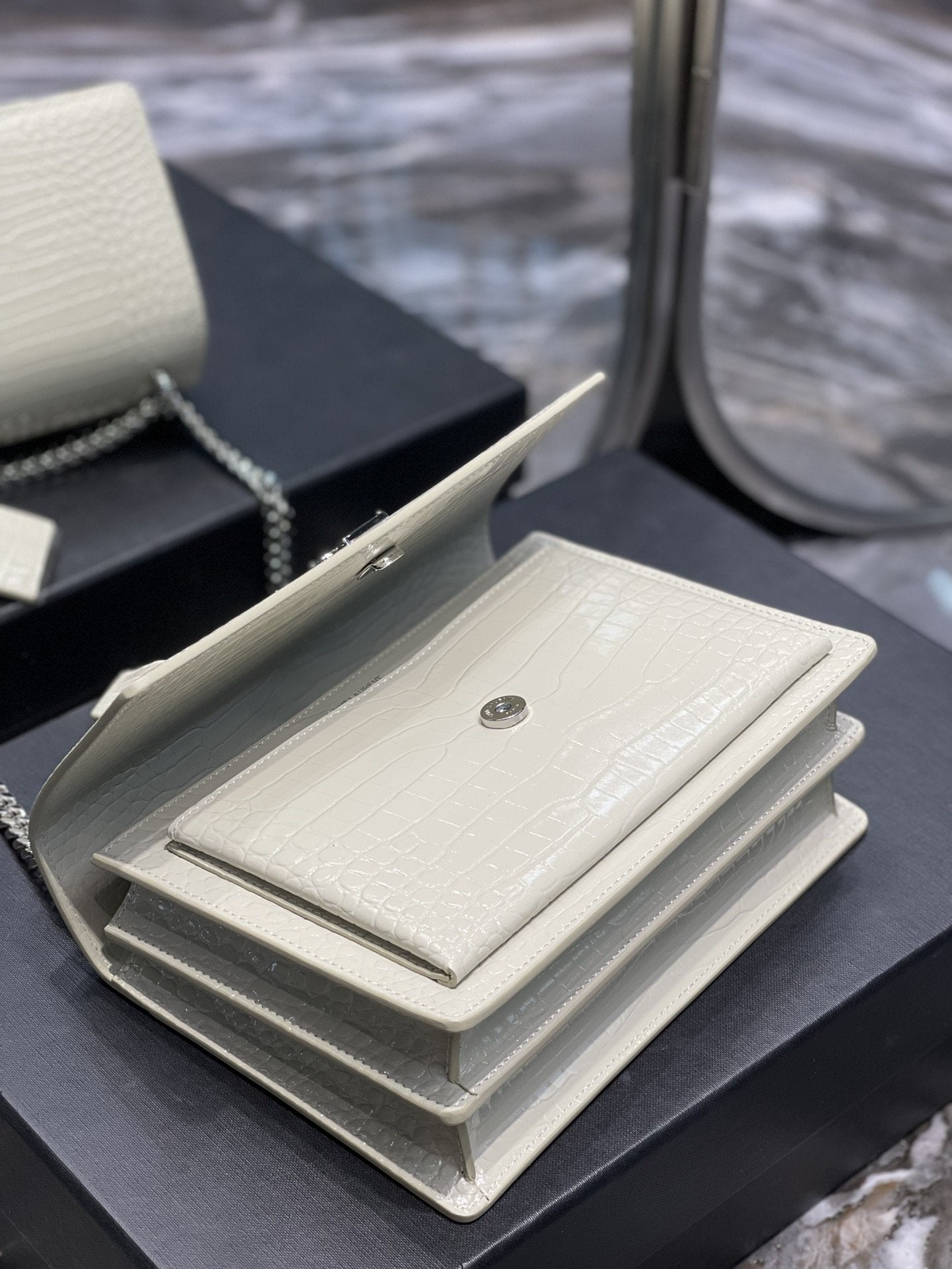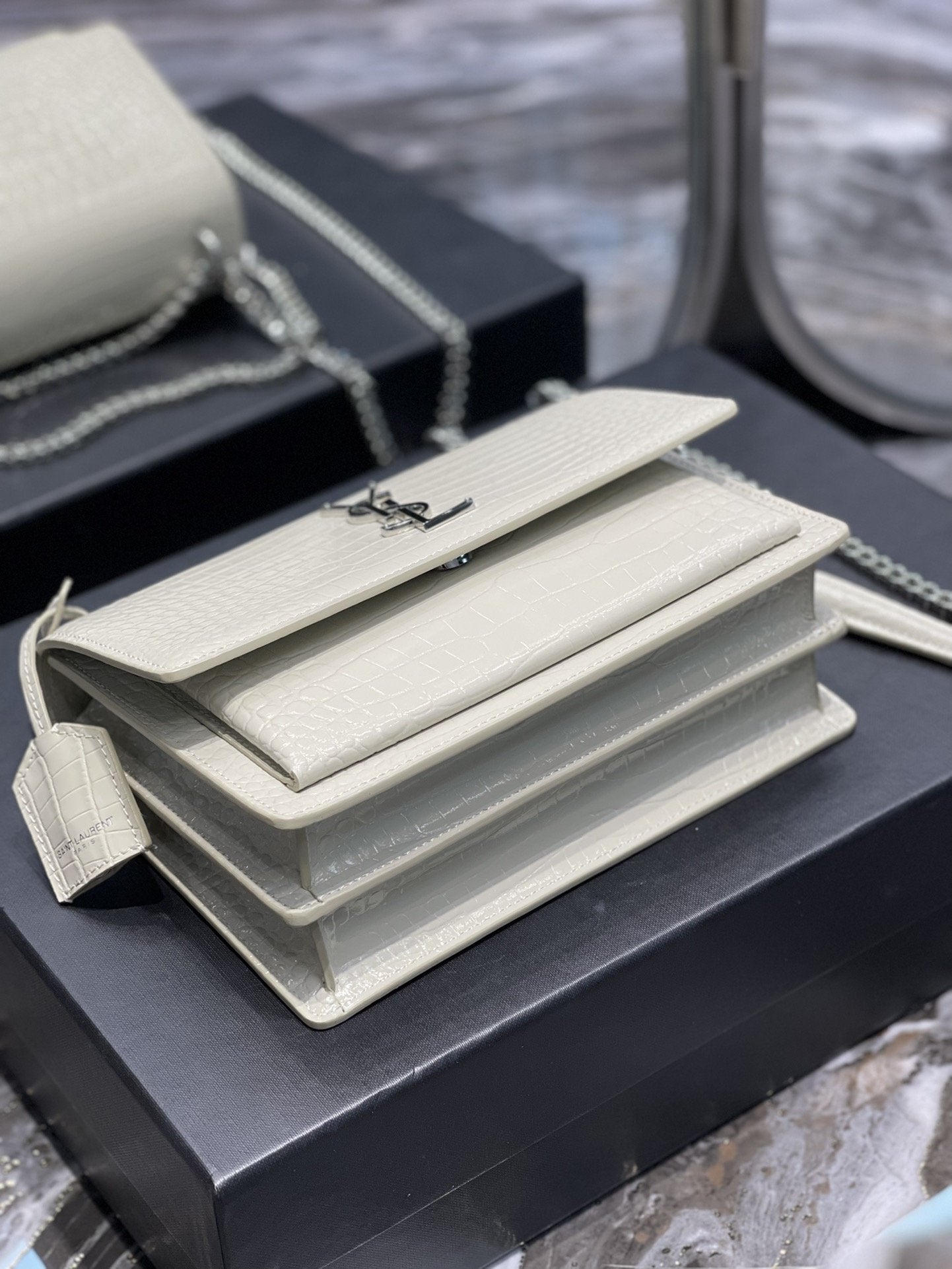 S.L Sunset Medium Chain Bag For Women 8.6in/22cm White YSL 442906DND0N9207